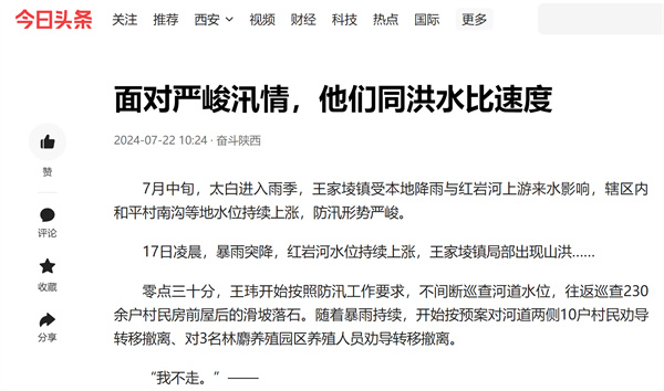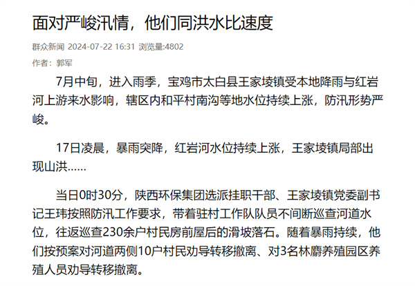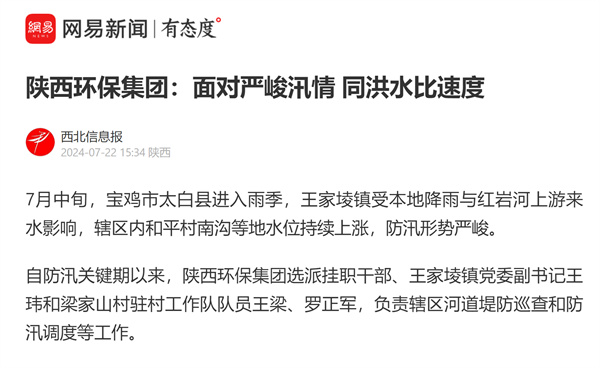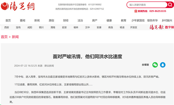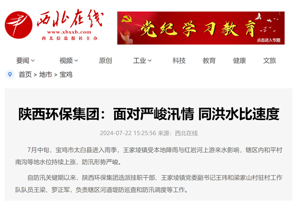 近日,学习强国、陕西日报-群众新闻网、阳光网、华商二三里等主流媒体对“七下八上”防汛关键期以来,j9九游会集团选派挂职干部、驻村工作队队员积极服务辖区防汛抗洪等工作情况进行了报道,有力展示了集团职工闻令而动、挺身而出,勇挑重担、冲锋在前的良好风貌。现集中刊载如下,以飨读者。